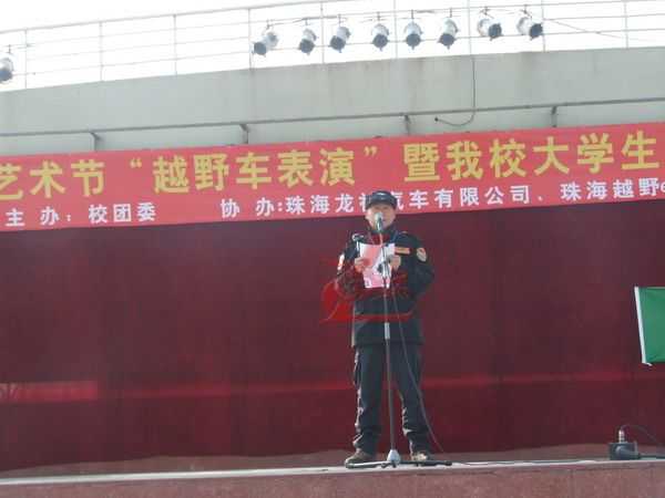 12月5日龍神公司與廣東科學(xué)技術(shù)職業(yè)學(xué)院聯(lián)合“越野e族”舉辦“第十七屆大學(xué)生文化藝術(shù)節(jié) 越野車文化交流表演暨大學(xué)生就業(yè)創(chuàng)業(yè)基地建設(shè)啟動(dòng)儀式在廣科院校園隆重召開。此次大學(xué)生文化藝術(shù)節(jié)由廣科院校團(tuán)委主辦,龍神公司、越野e族協(xié)辦,出席此次活動(dòng)的分別來自珠海,江門,中山,順德,澳門的越野e族朋友共八十多輛高級(jí)越野車參與;在緊張刺激的汽車轟鳴聲中拉開了序幕。