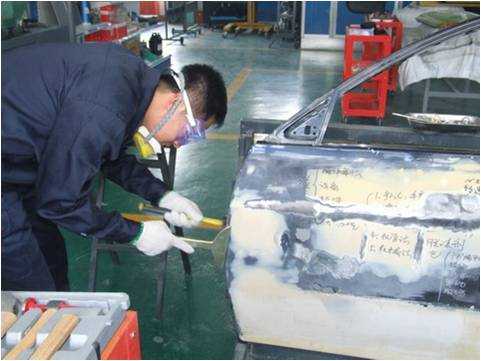 老師們親自實(shí)操鈑金修復(fù)