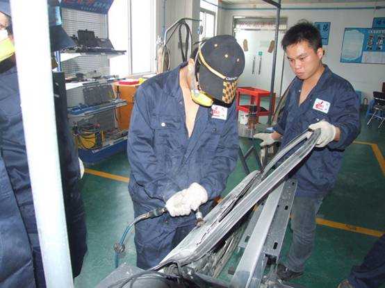 參加培訓(xùn)的老師所屬學(xué)校有:山西交通技師學(xué)院、張家口職業(yè)技術(shù)學(xué)院、深圳寶安職業(yè)技術(shù)學(xué)校、東營(yíng)市技術(shù)學(xué)院、笛威歐亞鄭州職業(yè)技術(shù)學(xué)校。來(lái)五湖四海的老師們特意抽出寶貴的時(shí)間前來(lái)珠海市龍神有限公司培訓(xùn)交流確實(shí)是難能可貴的。在為期一周時(shí)間培訓(xùn)課程方面,分別有汽車(chē)車(chē)身鈑金修復(fù)和噴涂?jī)身?xiàng)。