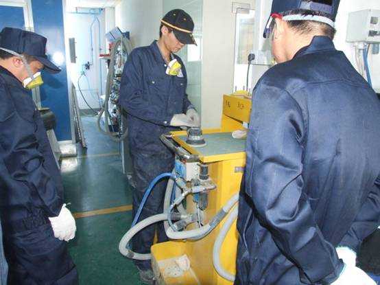 老師們討論研究無(wú)塵干磨系統(tǒng)的各項(xiàng)功能