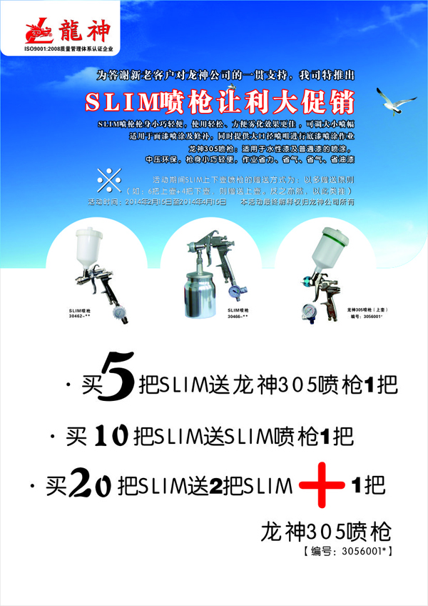 1)買5把SLIM送 龍神305噴槍[編號(hào)3056001*]一把