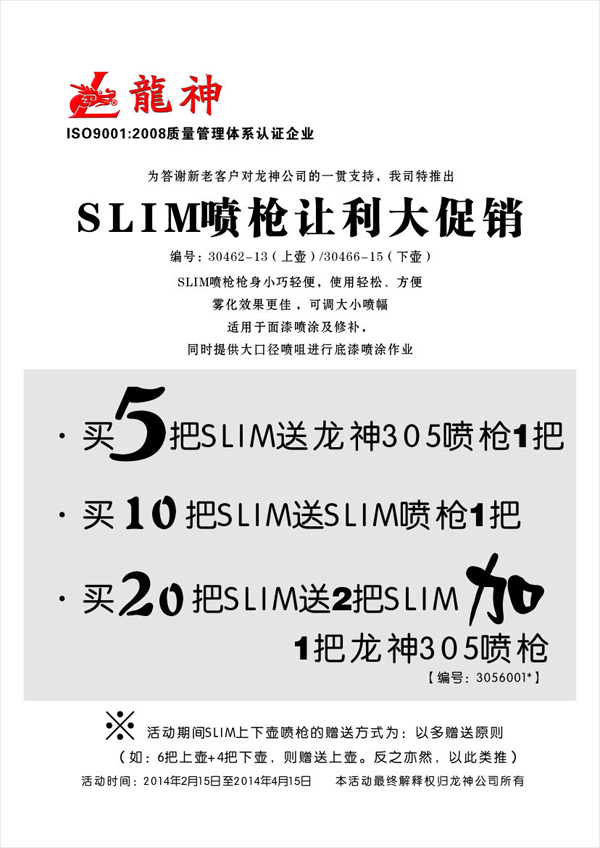 3)買20把SLIM送2把SLIM+送龍神305噴槍[編號(hào)3056001*]一把